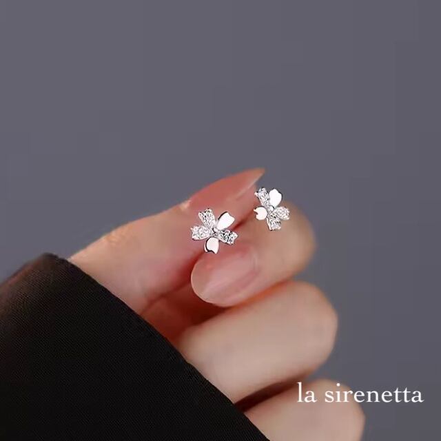 繊細な花びらと輝くジルコニアパヴェが、耳元を華やかにし、春のおしゃれを彩ります。