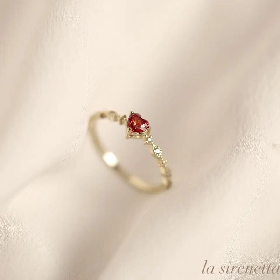シンプルなデザインながらも、その鮮やかな赤い輝きが、指元を引き立てます。