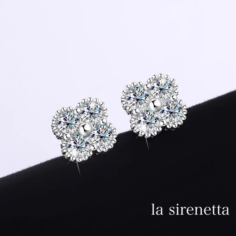 0.1Caratのモアサナイトを4つ使用した、四葉のクローバーのピアス。
