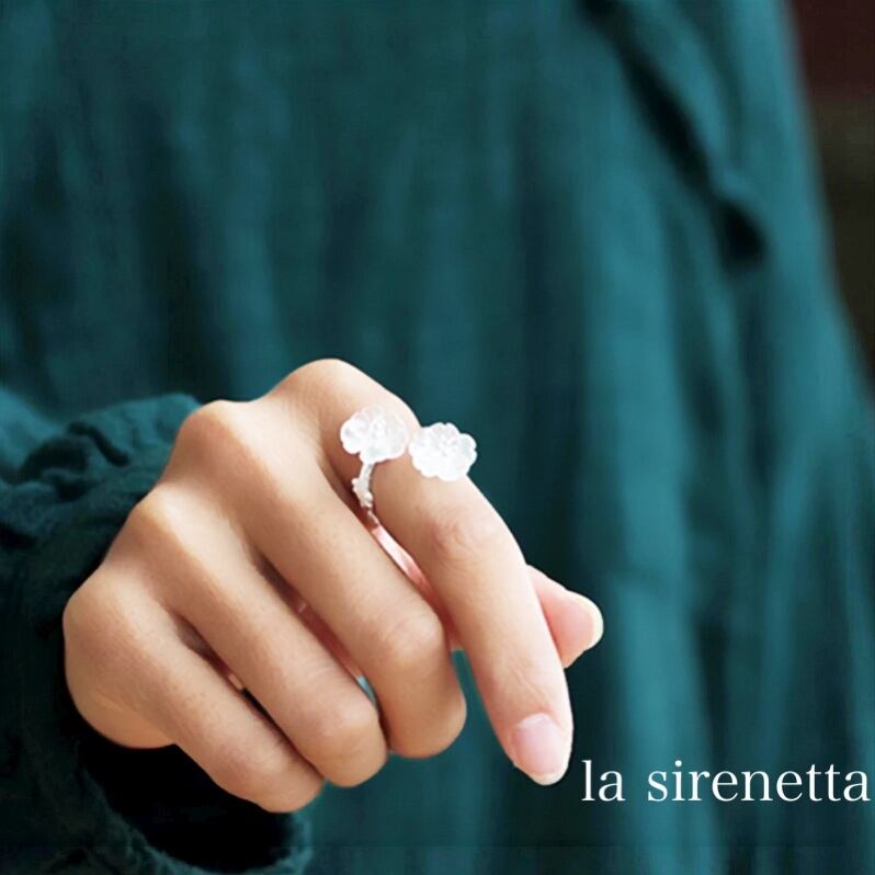透明感のある花びらが涼やかな印象を与え、指元をおしゃれに彩ります。