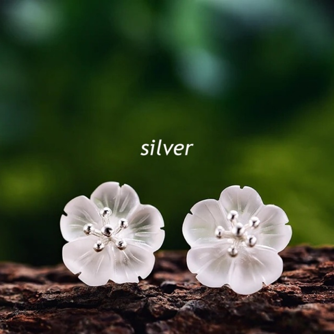 透明感のある花びらが涼やかな印象を与え、指元をおしゃれに彩ります。