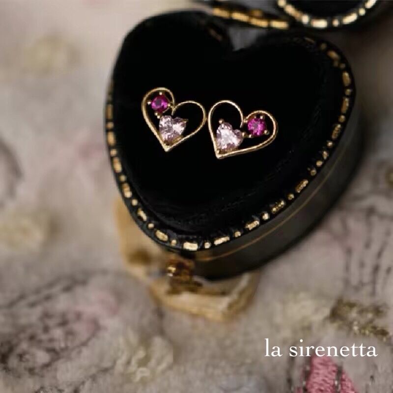 ハートの中にジルコニアがあるピアス。